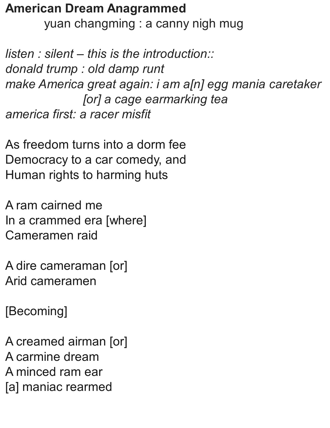 American Dream Anagrammed